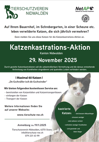 Da wir diesen Anlass genauestens Planen müssen, ist das spontane vorbeibringen von Katzen am Kastrationstag NICHT möglich!
